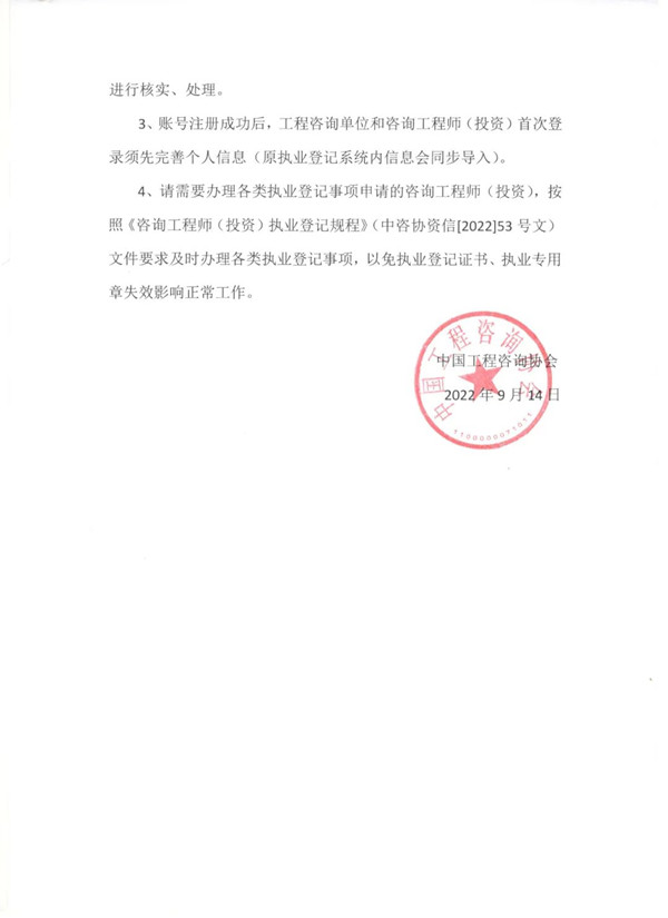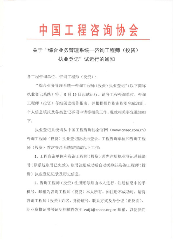 关于“综合业务管理系统—咨询工程师(投资)执业登记”试运行的通知