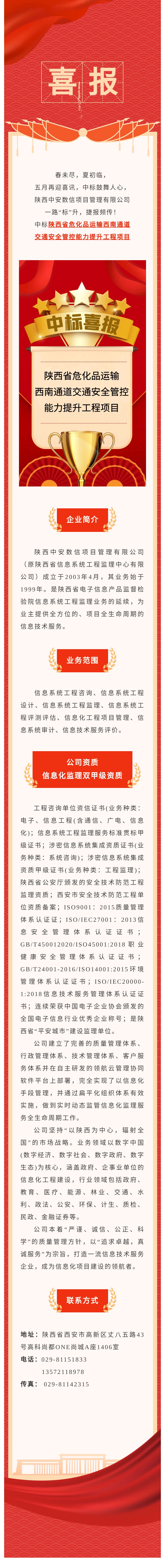陕西中安数信中标陕西省危化品运输西南通道 交通安全管控能力提升工程项目