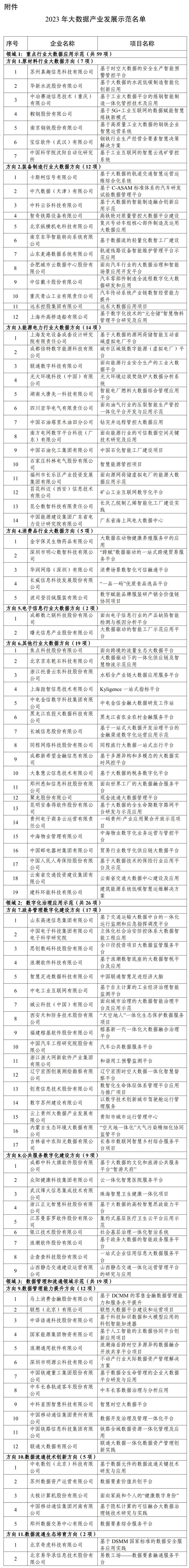 工信部公布2023年大数据产业发展示范项目名单